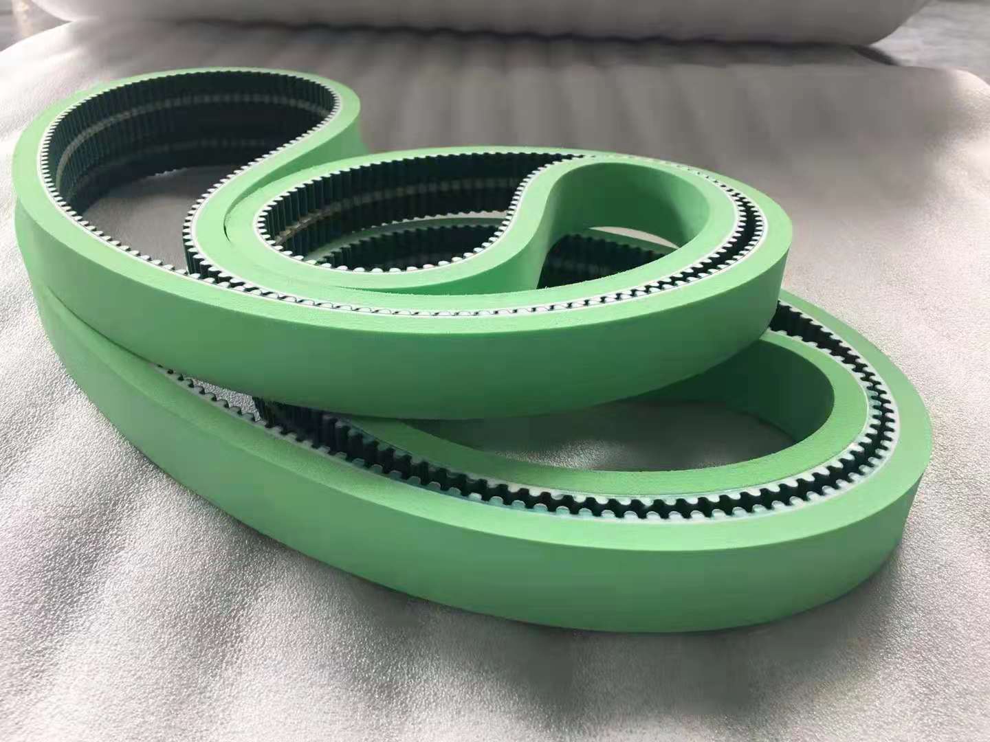 橡膠同步帶采用優(yōu)質(zhì)進(jìn)口氯丁膠為主要原料,配入多種不同用途的輔料;骨架材料為進(jìn)口優(yōu)質(zhì)玻璃纖維線繩;帶齒表面采用尼龍66高彈力布做保護(hù)。橡膠同步帶采用優(yōu)質(zhì)進(jìn)口氯丁膠為主要原料,配入多種不同用途的輔料;骨架材料為進(jìn)口優(yōu)質(zhì)玻璃纖維線繩;帶齒表面采用尼龍66高彈力布做保護(hù)。性能 具有動(dòng)態(tài)屈繞性好,抗龜裂性能好,臭氧性能優(yōu)良,耐老化,耐熱,耐油,耐磨損等特點(diǎn)。氯丁膠同步帶廣泛應(yīng)用于紡織、汽車、化纖、卷煙、造紙、印刷、化工的機(jī)械設(shè)備;近年來,采礦冶金、鋼鐵機(jī)械、醫(yī)療設(shè)備需求量日益增加.